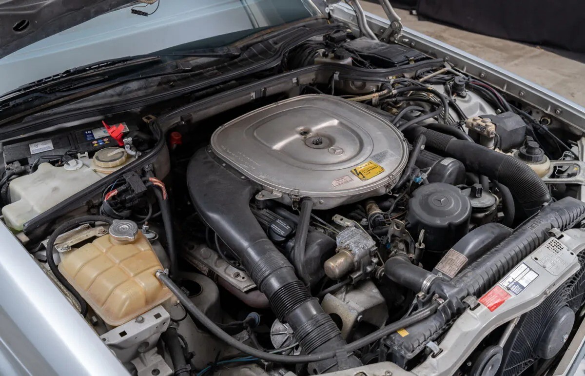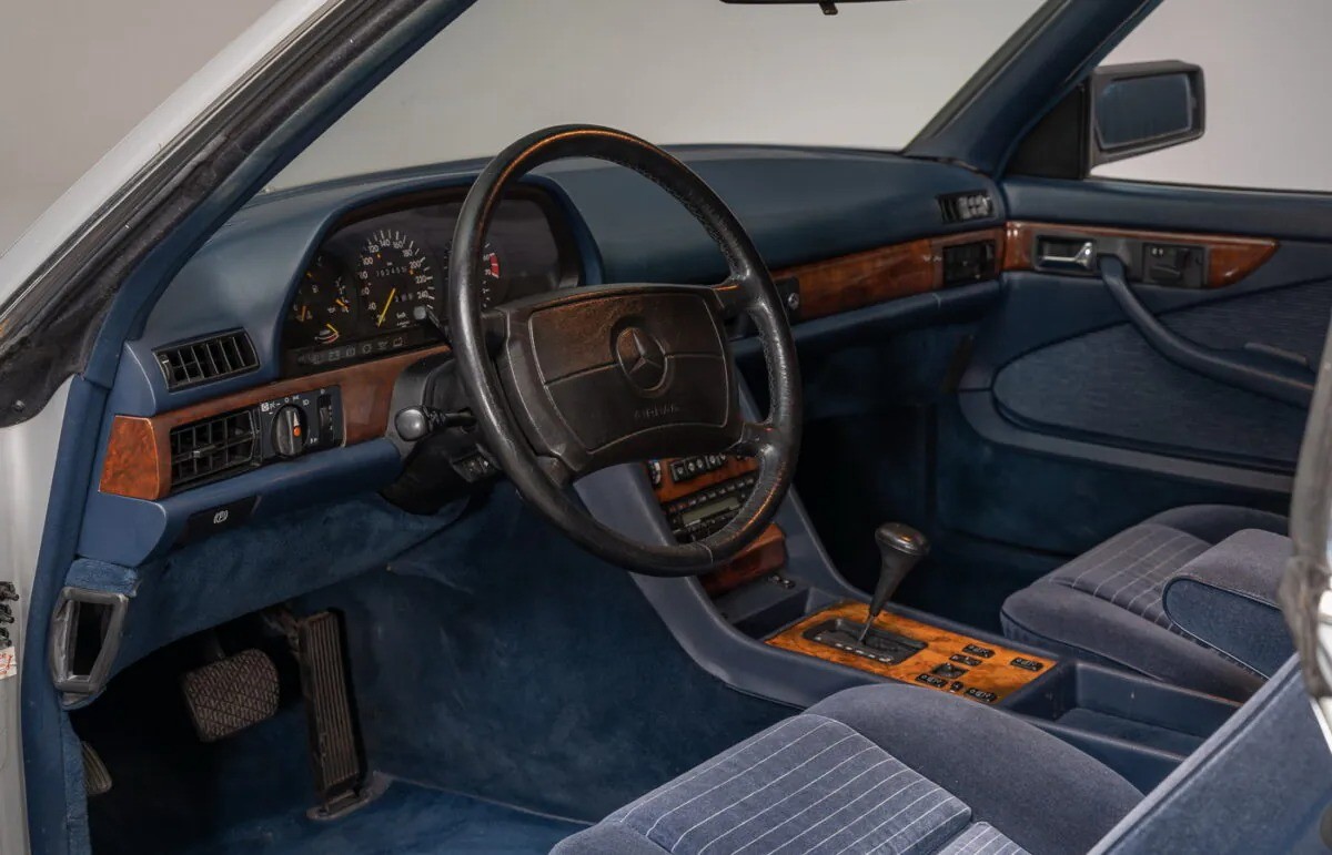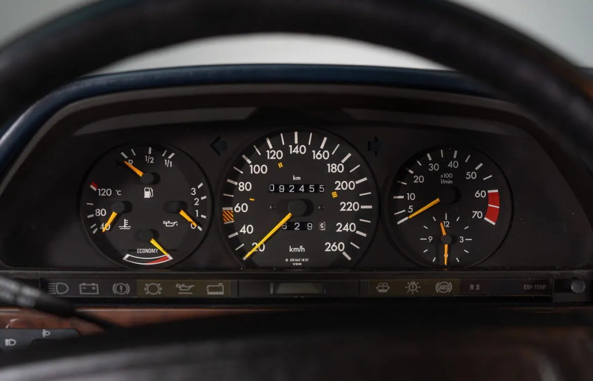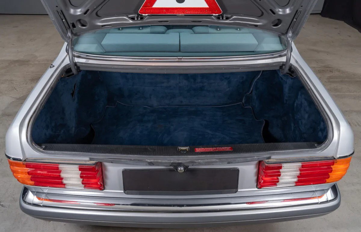- Заводская аудиосистема Becker, автоматический климат-контроль и подушка безопасности — редкость для своего времени, но стандарт для 560 SEC.