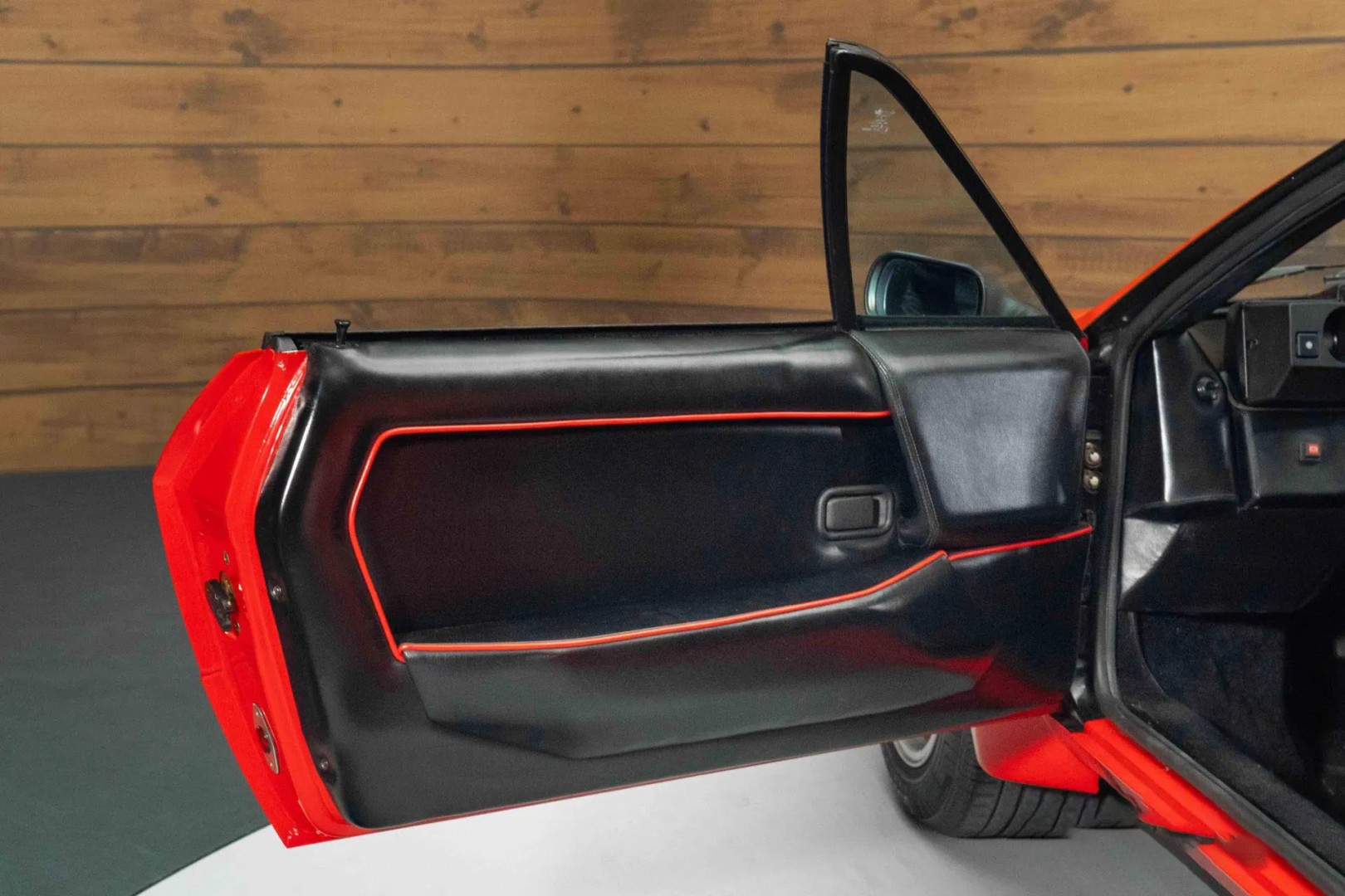 - Экстерьер: Глубокий красный лак сохраняет заводской блеск, без следов перекраски. Агрессивные линии кузова, характерные для Bertone, подчёркнуты фирменными Countach-дисками — редкостью даже среди Jalpa.