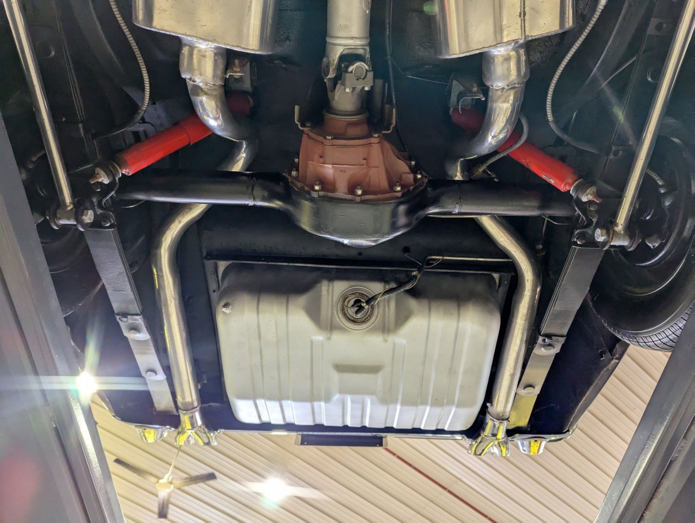 - Задний мост Ford 9" — недавно восстановлен с новыми 3.50 шестернями, оси 31 spline и дифференциалом Detroit Locker.