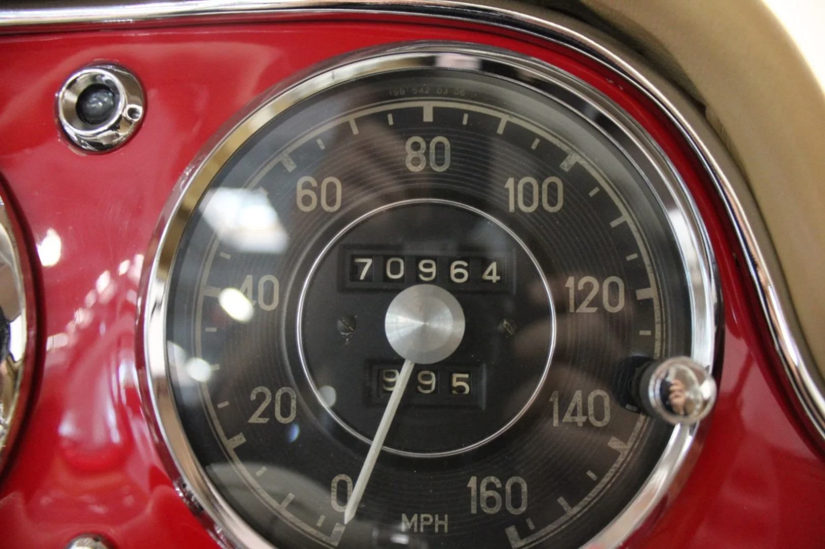 Экстерьер автомобиля выполнен в глубоком красном цвете (Fire-Engine Red), который идеально контрастирует с элегантной кремовой кожаной обивкой салона. Особенную ценность данному экземпляру придает наличие редких и крайне востребованных дисков Rudge, с которыми автомобиль был поставлен с завода. В комплекте также идет эксклюзивный набор чемоданов, выполненных в цвет интерьера.