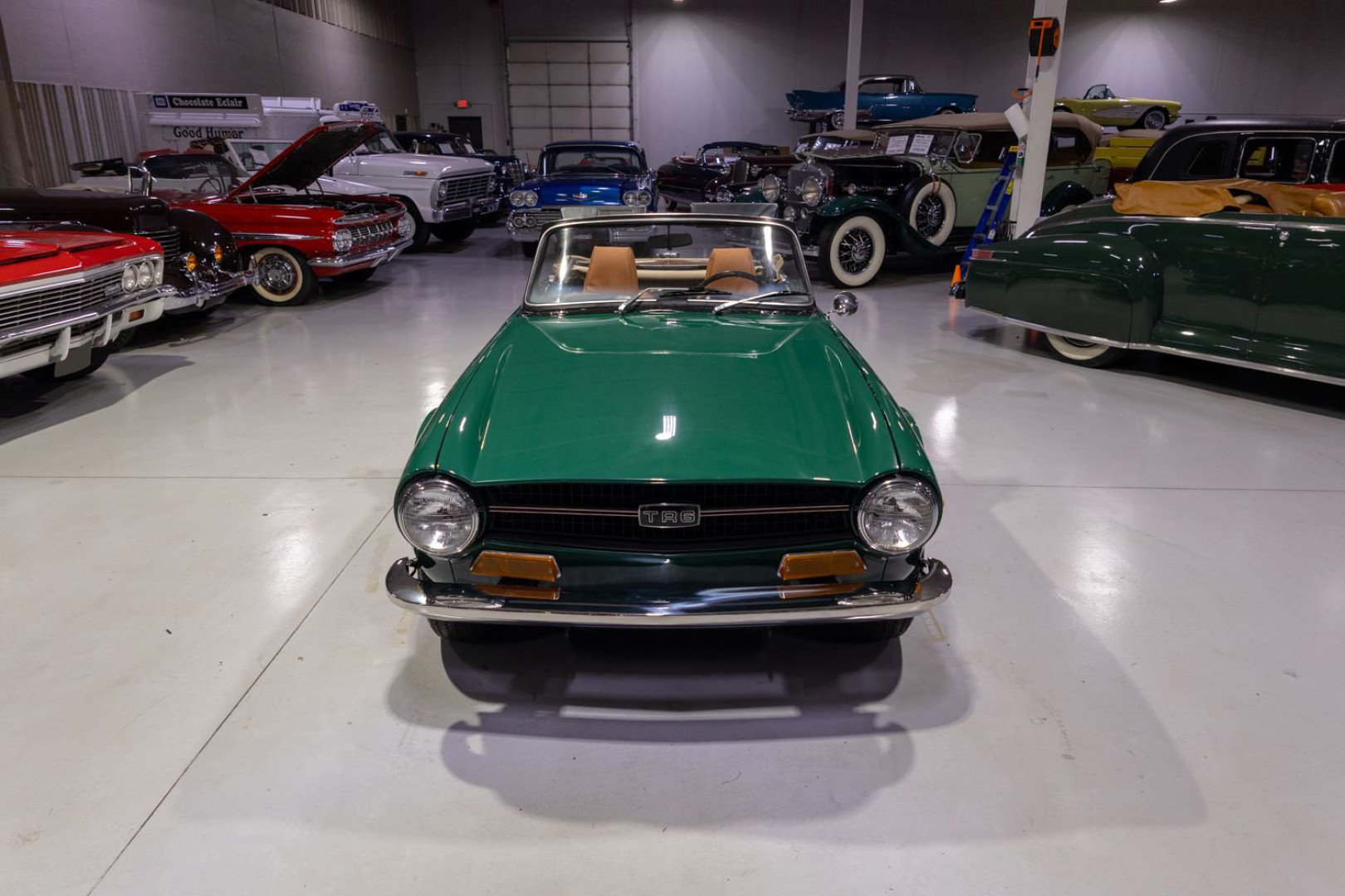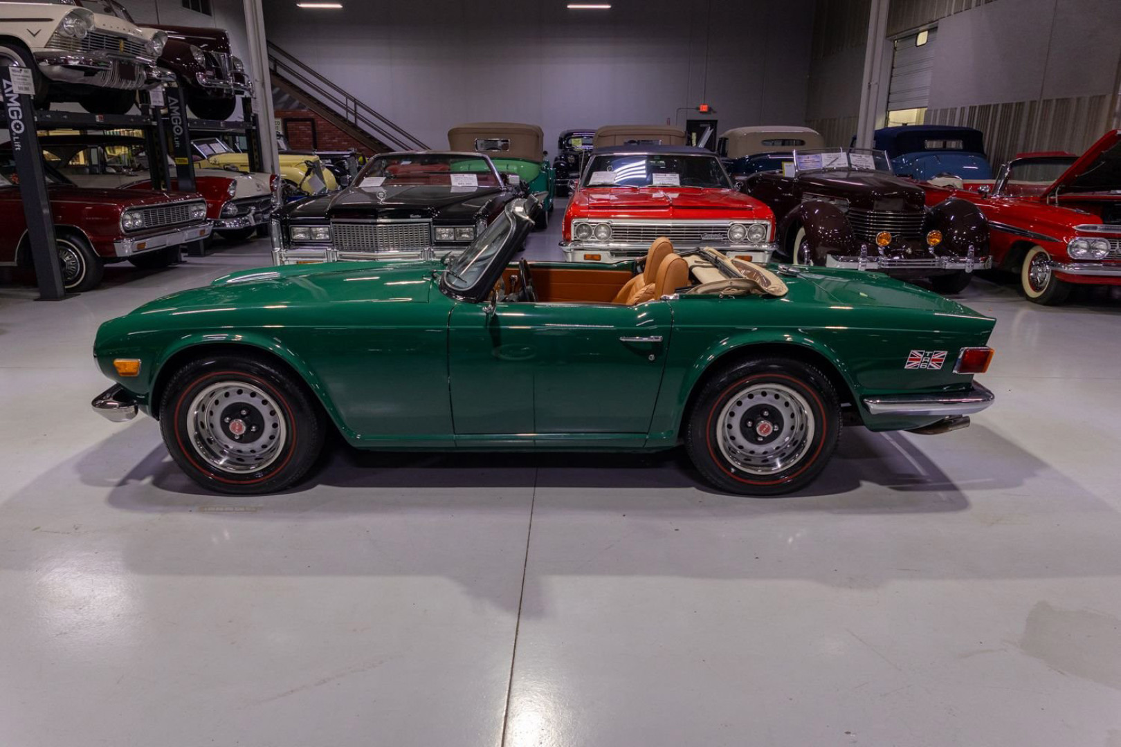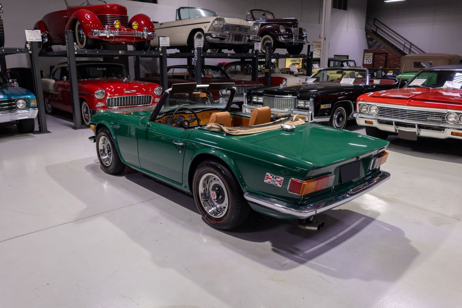 Экстерьер: Внешний вид автомобиля полностью соответствует заводским спецификациям. Кузов окрашен в оригинальный оттенок Laurel Green, придающий родстеру аутентичный вид в стиле британских гоночных машин. Образ дополняют 15-дюймовые вентилируемые стальные колёса с классическими шинами Redline (с красной полосой). Складной матерчатый тент песочного цвета находится в отличном состоянии и управляется вручную.
