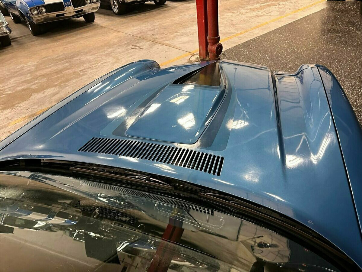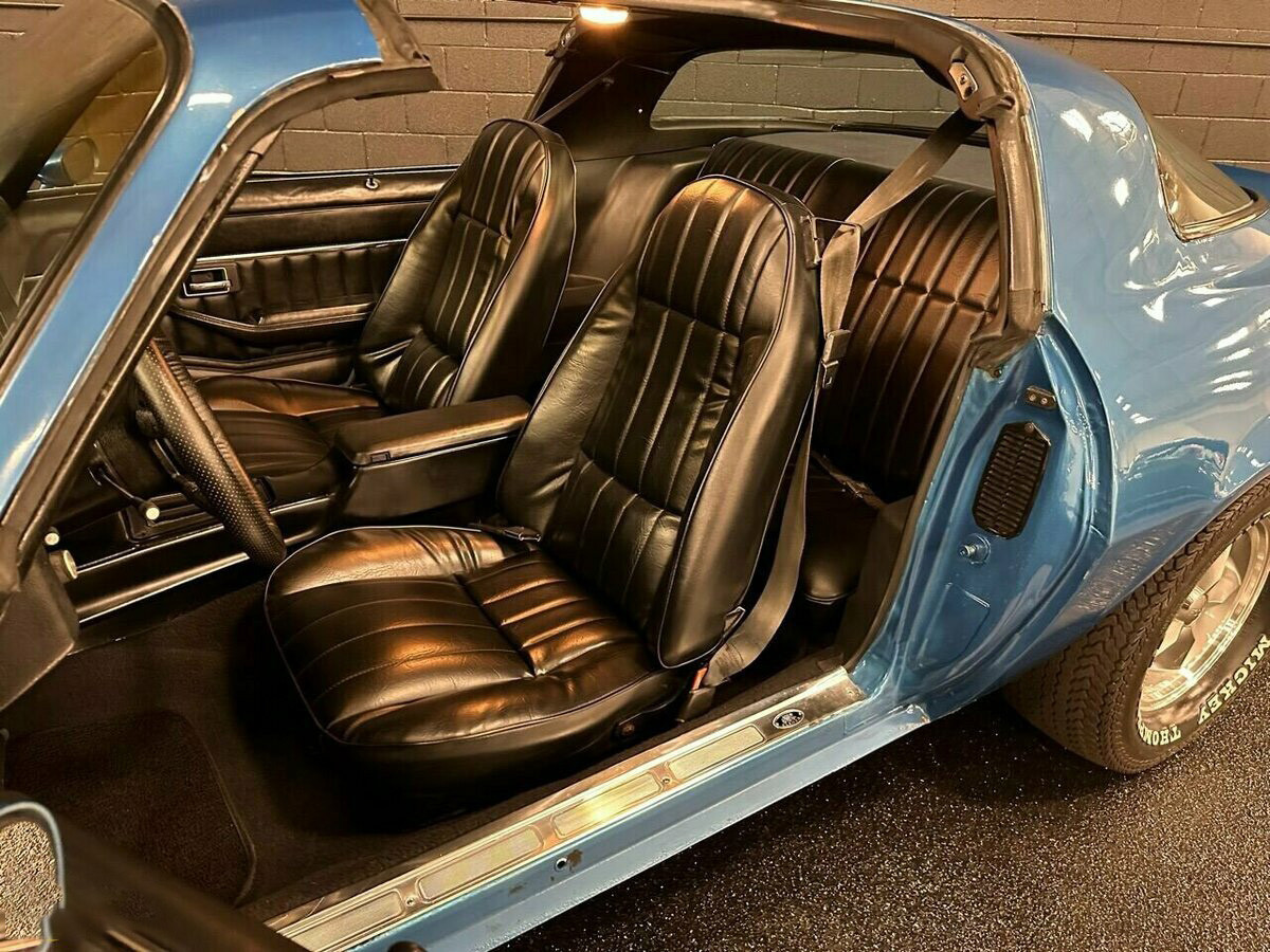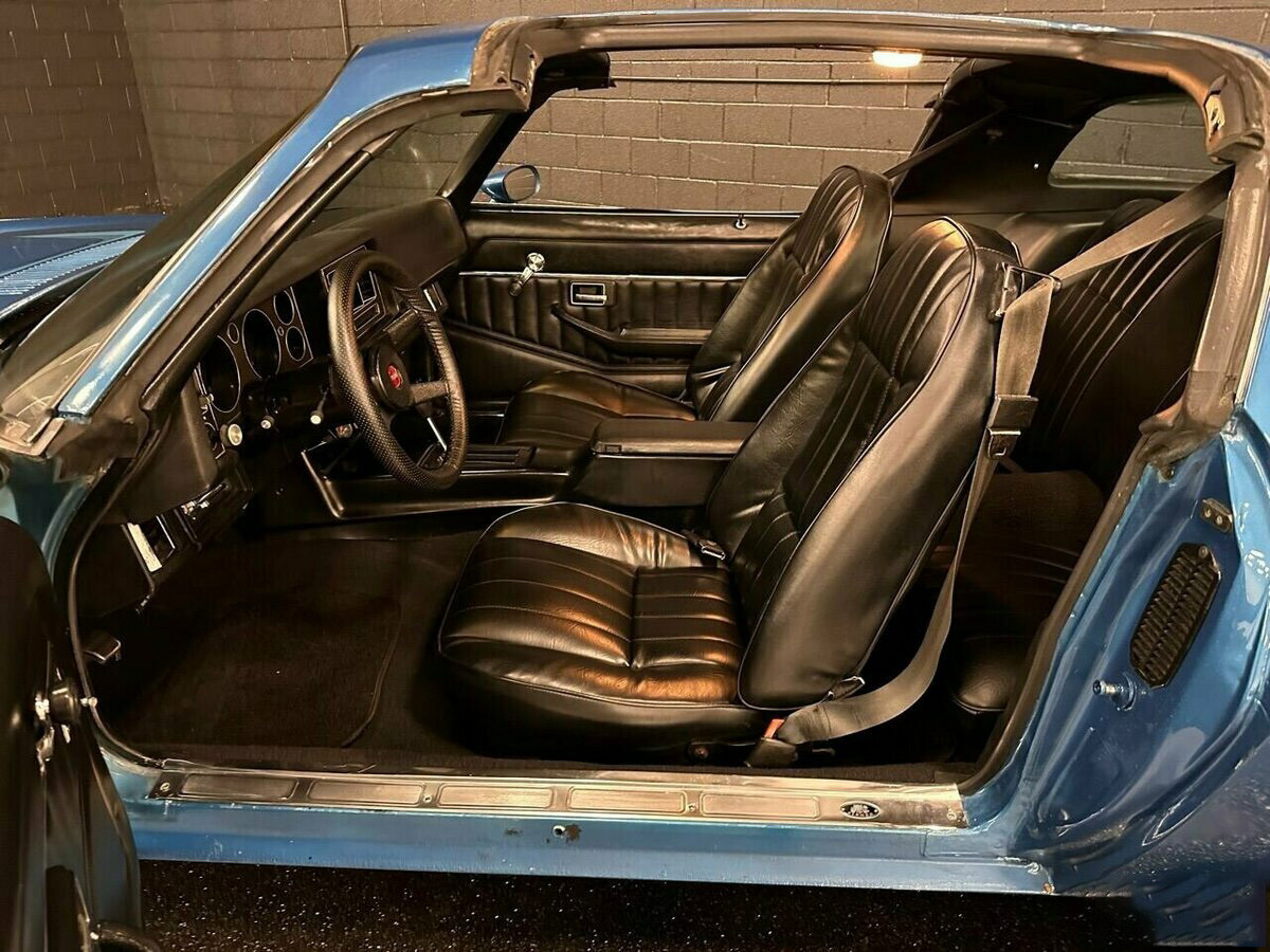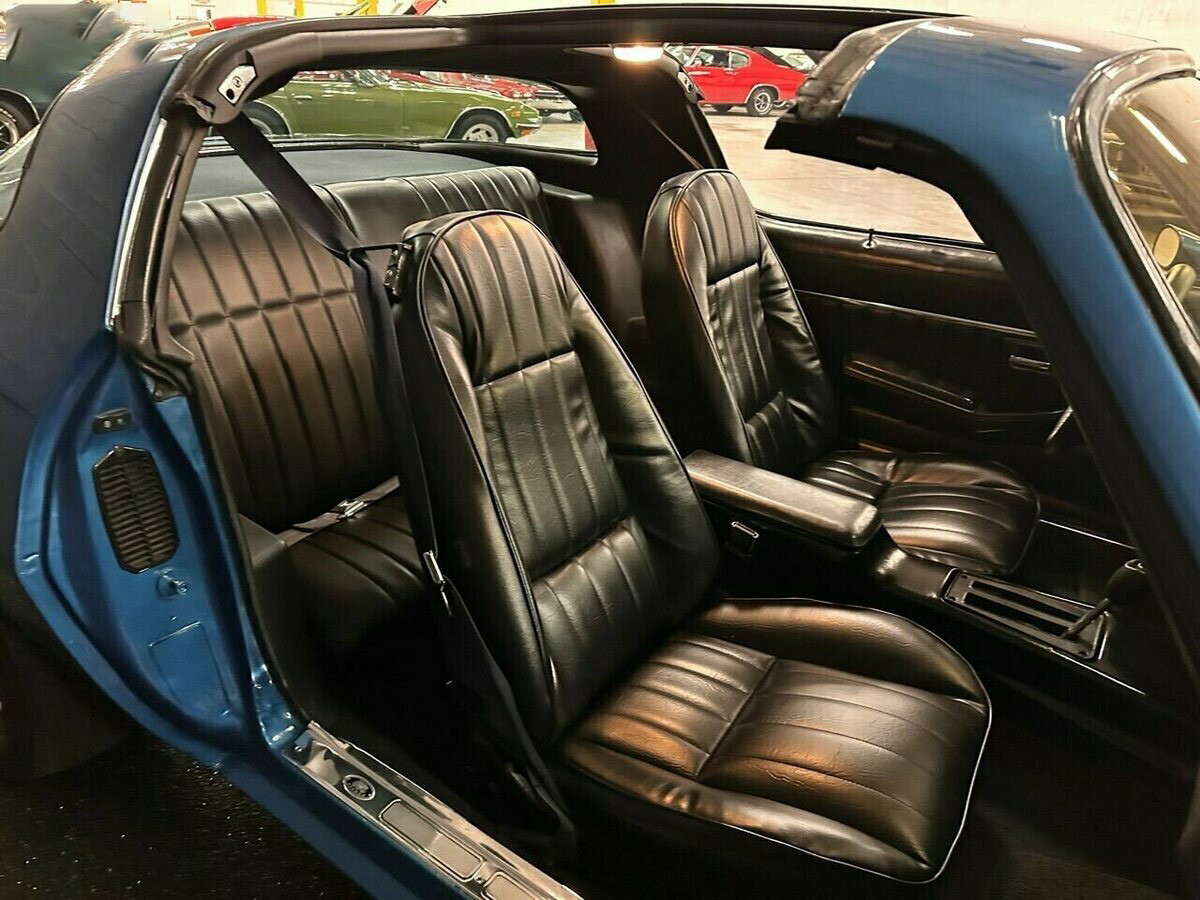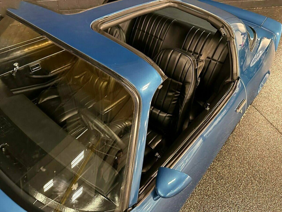 Технические характеристики и оснащение: Под капотом установлен надёжный двигатель V8 объёмом 5,7 литра (350 кубических дюймов). Автомобиль оборудован заводским кондиционером, гидроусилителем руля и эффективными дисковыми тормозами с усилителем. Двойная выхлопная система обеспечивает глубокое и насыщенное звучание, характерное для мощных моторов той эпохи. Особый шарм и ощущение свободы дарит редкая опция — крыша типа T-Top со съёмными стеклянными панелями.