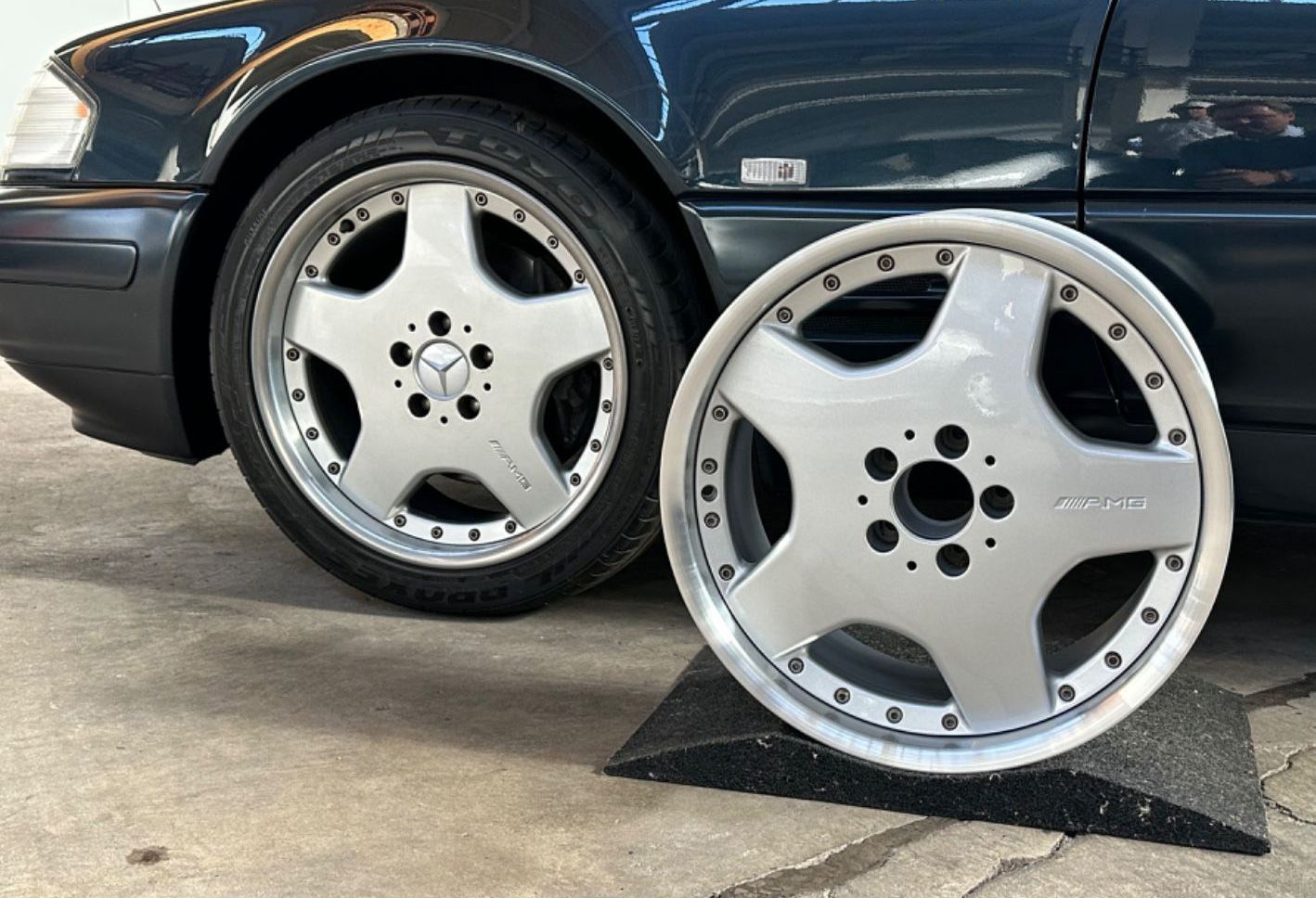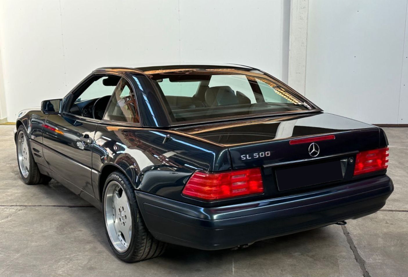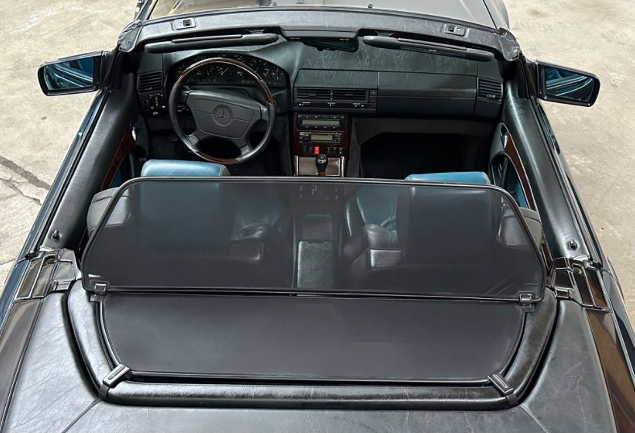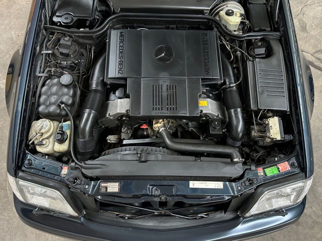 Экстерьер и особенности кузова: Кузов окрашен в благородный цвет «Изумрудно-чёрный металлик» (Smaragdschwarz) и на 90% сохранился в заводской краске. Автомобиль укомплектован редчайшей заводской панорамной стеклянной крышей. Также в комплекте идёт оригинальный мягкий верх тёмно-синего цвета в отличном состоянии (гидравлические цилиндры и блок управления уже обновлены). Облик завершают подлинные двухсоставные 18-дюймовые диски AMG (аналогичные версии SL 60 AMG), которые прошли полную профессиональную реставрацию.