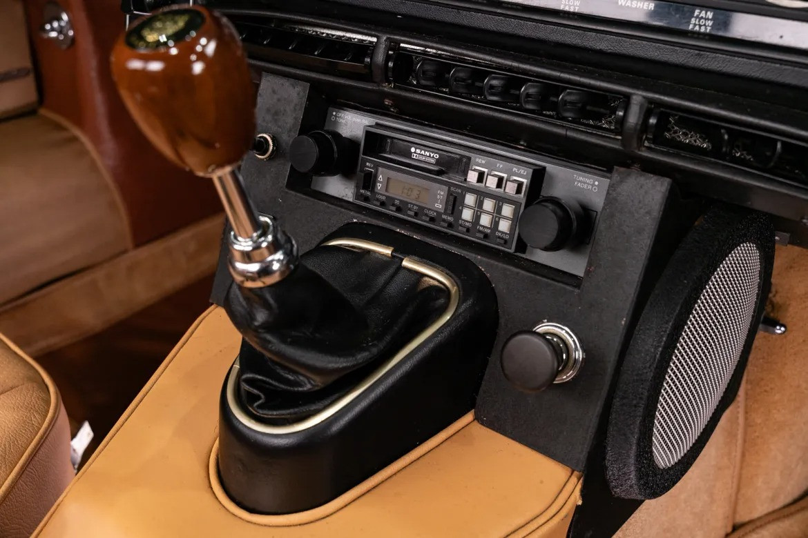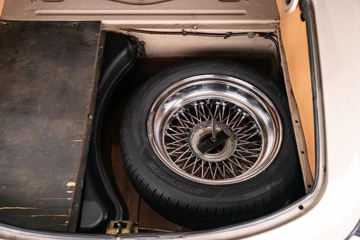 Детали интерьера и экстерьера: Внутреннее пространство оформлено в классическом стиле: кожаные сиденья с подголовниками, рулевое колесо с деревянным ободом и деревянная ручка переключения передач. Внешний облик дополняют сверкающие хромированные спицованные диски с центральной гайкой (knock-off). В комплекте с машиной поставляются оригинальное руководство по эксплуатации и домкрат.