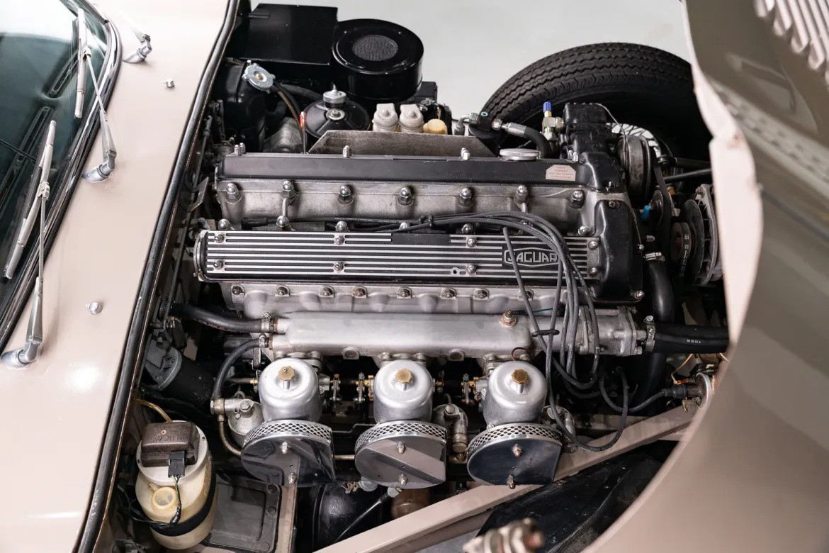 Технические характеристики: Автомобиль оснащён классическим 4,2-литровым рядным шестицилиндровым двигателем с тремя карбюраторами SU. Силовая установка работает в паре с четырёхступенчатой механической трансмиссией. Для комфортного вождения в стиле Gran Turismo родстер оборудован редкими для этой модели опциями: заводским кондиционером и гидроусилителем руля. За торможение отвечают дисковые тормоза на всех четырёх колёсах с усилителем.